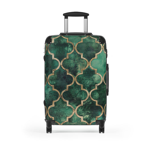 Green and Gold Moroccan Suitcase, Bright and Colorful Designer Luggage for Airport, Rolling Weekender Travel Bag Gift for Flight Attendant
