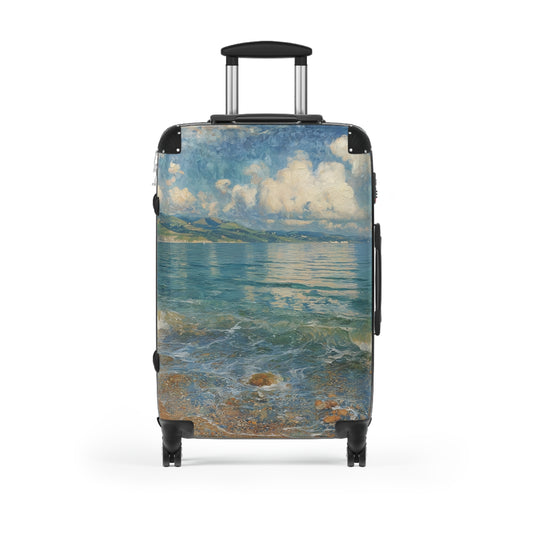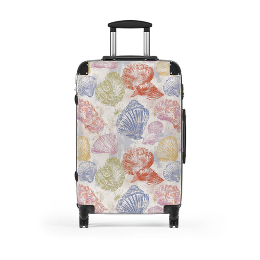 Tropical Beach Sea Shell Suitcase, Bright and Colorful Vacation Luggage for Airport, Rolling Weekender Travel Bag Gift for Flight Attendant