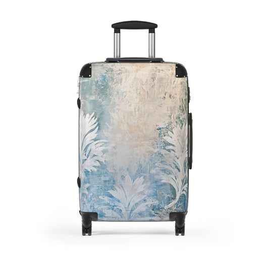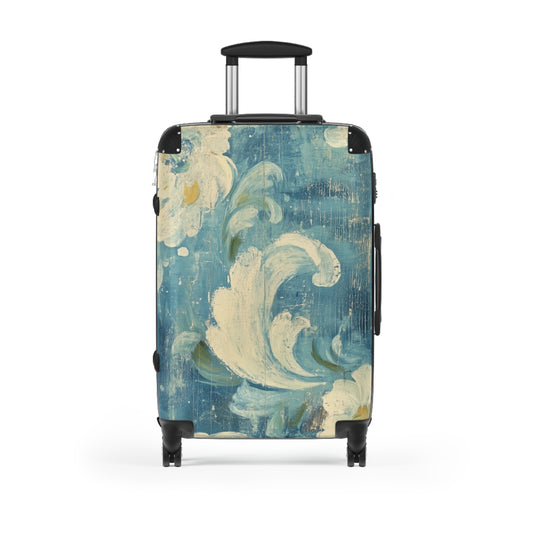 Tropical Floral Blue Suitcase, Bright and Colorful Designer Luggage for Airport, Rolling Weekender Travel Bag Gift for Flight Attendant