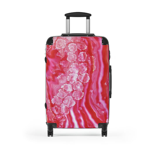 Tropical Floral Pink Suitcase, Bright and Colorful Designer Luggage for Airport, Rolling Weekender Travel Bag Gift for Flight Attendant