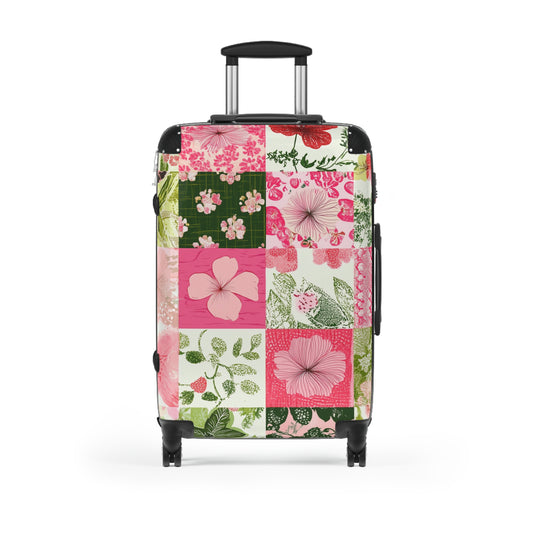 Tropical Floral Patchwork Suitcase, Bright and Colorful Designer Luggage for Airport, Rolling Weekender Travel Bag Gift for Flight Attendant