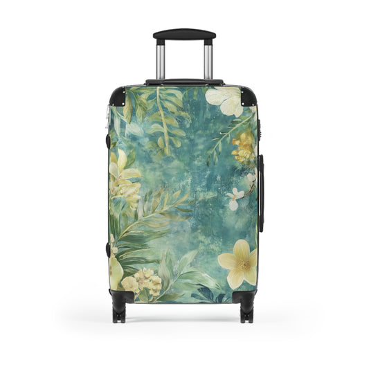 Tropical Floral Green Suitcase, Bright and Colorful Designer Luggage for Airport, Rolling Weekender Travel Bag Gift for Flight Attendant