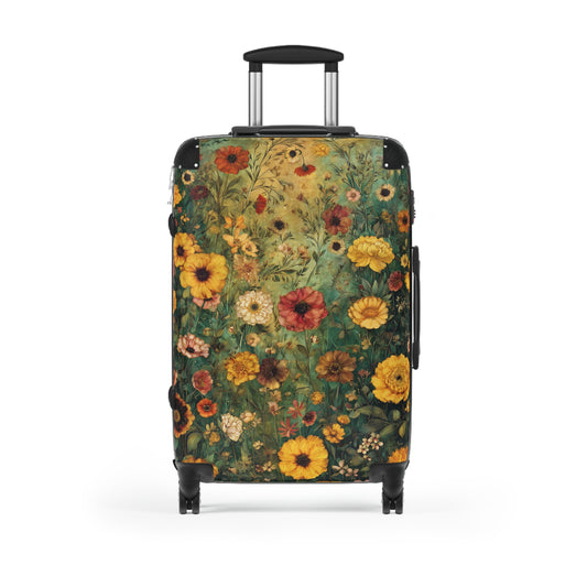 Gold Gustav Klimt Inspired Suitcase, Bright and Colorful Floral Luggage for Airport, Rolling Weekender Travel Bag Gift for Flight Attendant