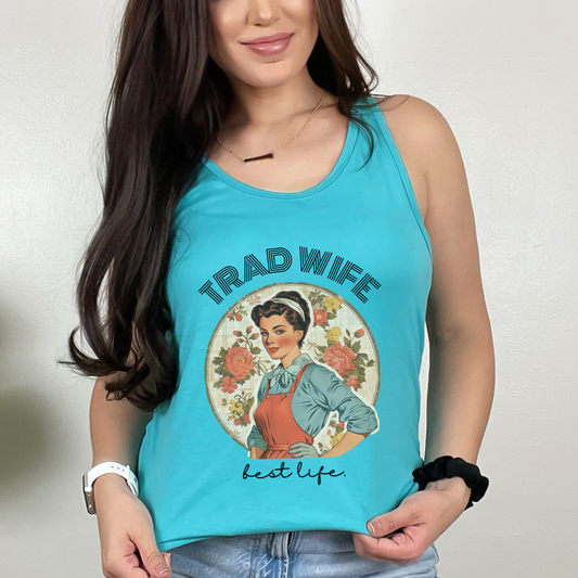 Trad Wife Women's Ideal Racerback Tank, Wifey, Traditional Wife Tank Top, Wifely Gift, Vintage Housewife Shirt, Real Housewife Gift, Wifely Gift, 1950s Housewife