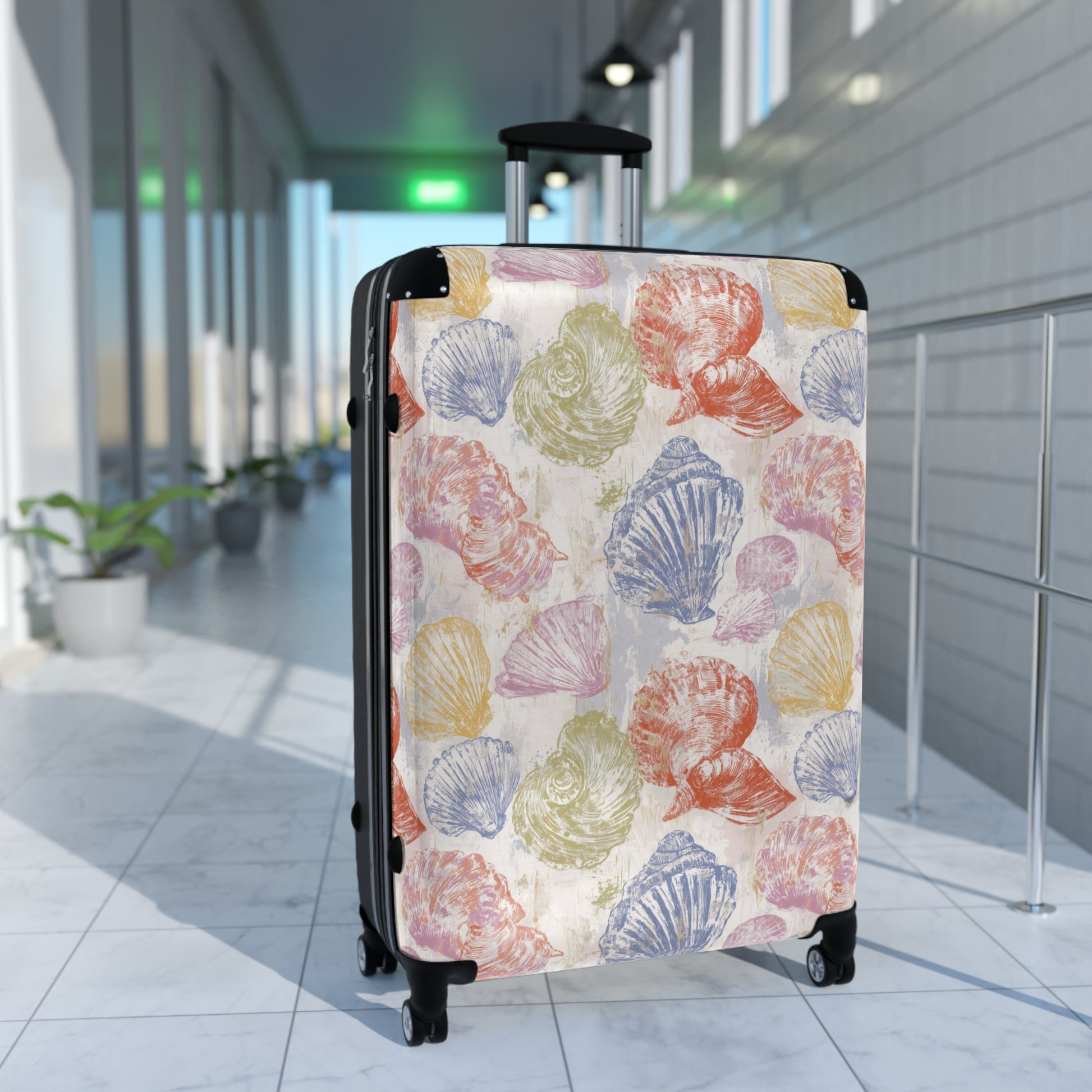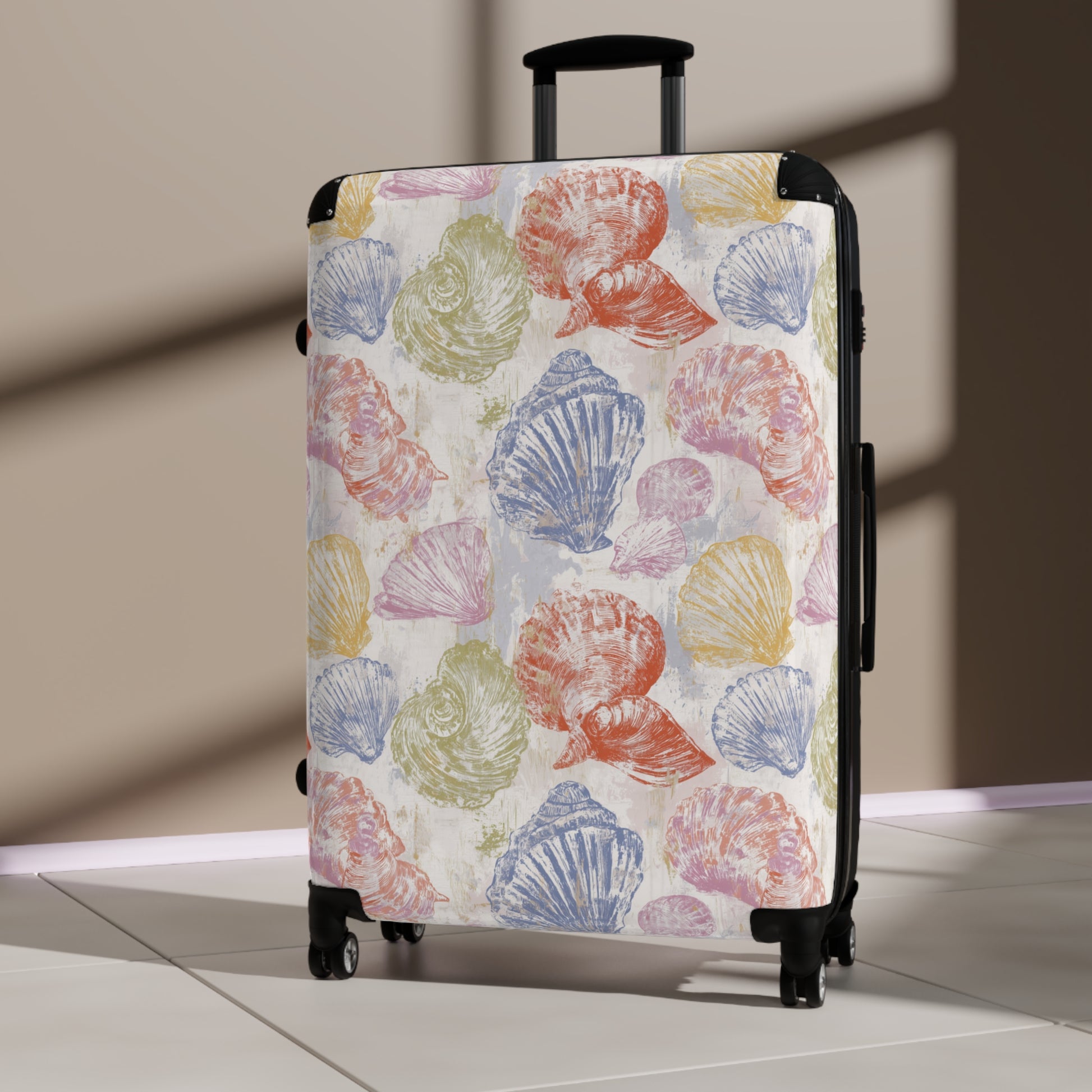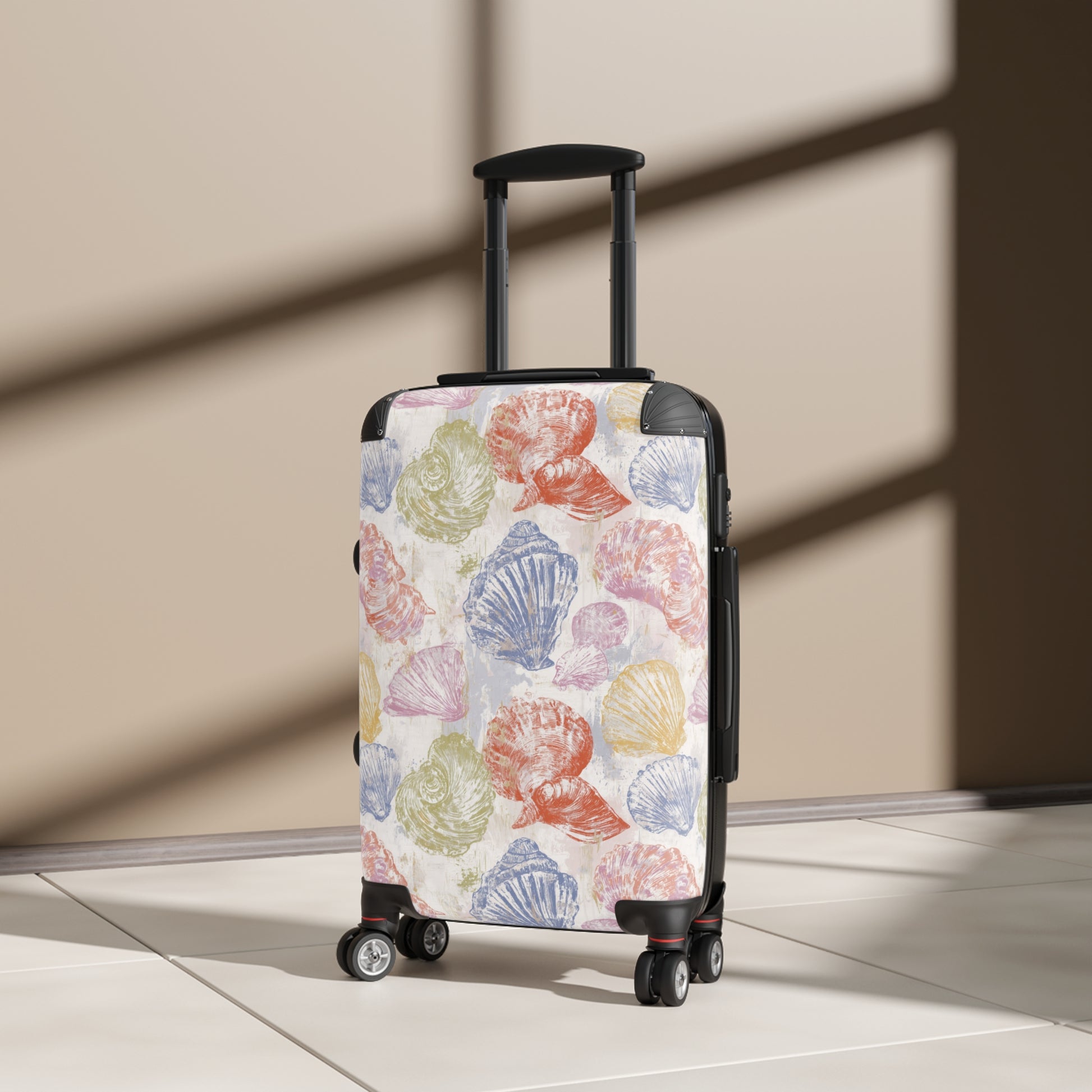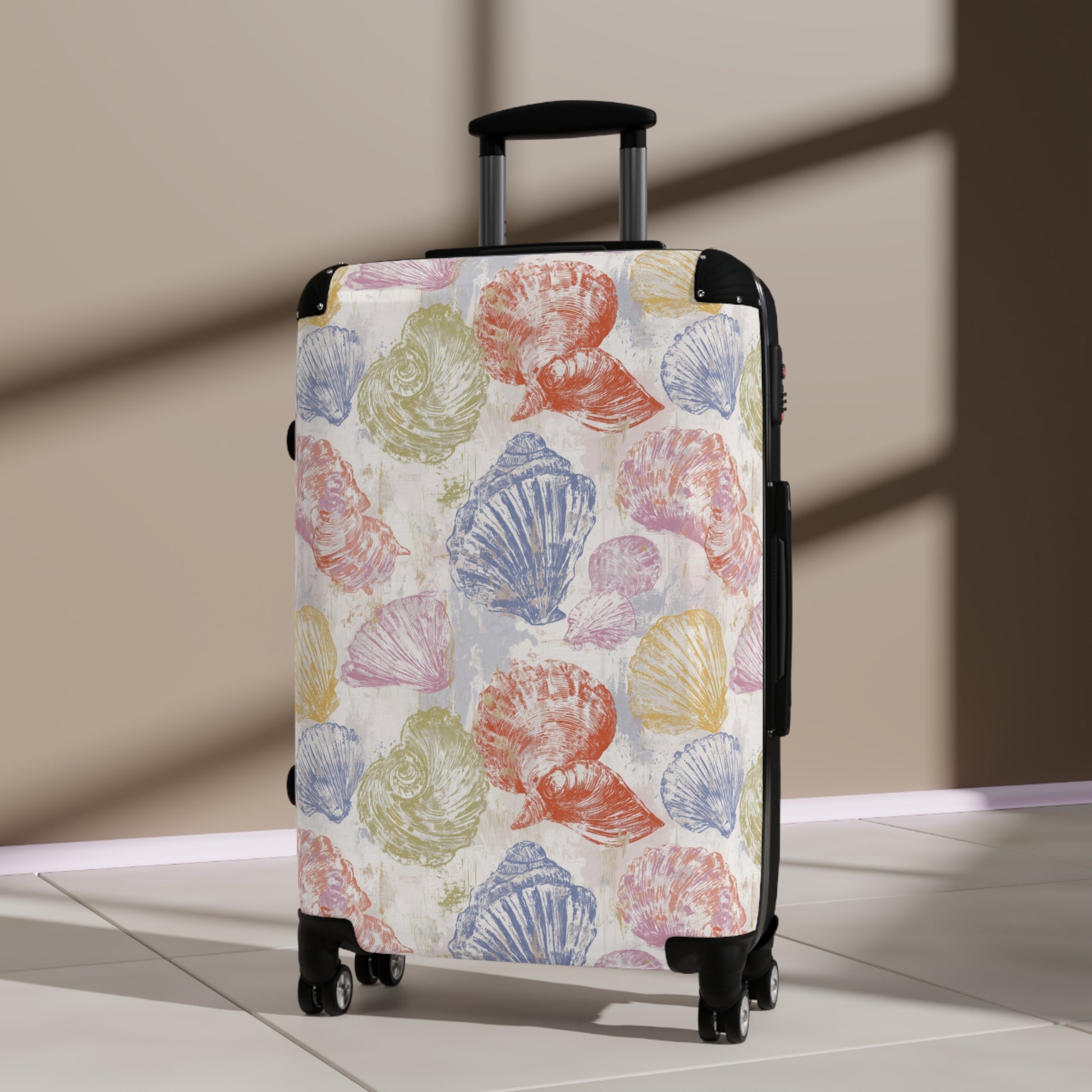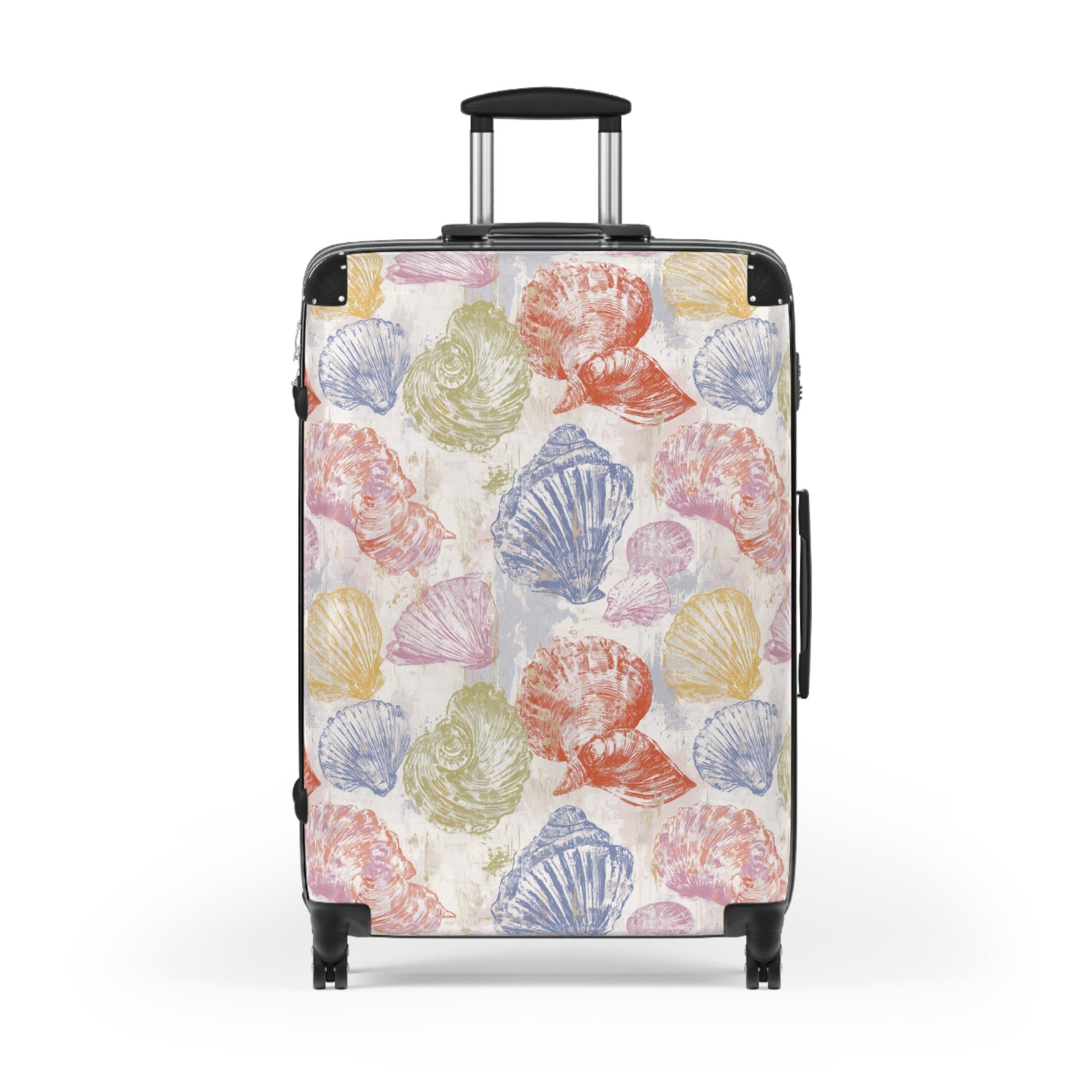 Tropical Beach Sea Shell Suitcase, Bright and Colorful Vacation Luggage for Airport, Rolling Weekender Travel Bag Gift for Flight Attendant